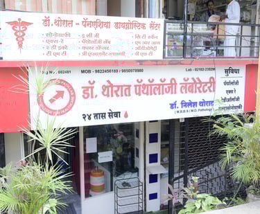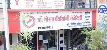 "डॉ. थोरात यांच्या पॅनएशिया डायग्नोस्टिक सेंटरमध्ये, आम्ही आमच्या समुदायाच्या आरोग्यसेवा गरजा पूर्ण करण्यासाठी विश्वासार्ह, अचूक आणि कार्यक्षम निदान सेवा प्रदान करण्यासाठी समर्पित आहोत. उत्कृष्टतेची बांधिलकी आणि अनुभवी व्यावसायिकांच्या टीमसह, आम्ही विस्तृत श्रेणी ऑफर करतो. आमच्या रूग्णांचे कल्याण सुनिश्चित करण्यासाठी पॅथॉलॉजी आणि निदान चाचणी सेवा.